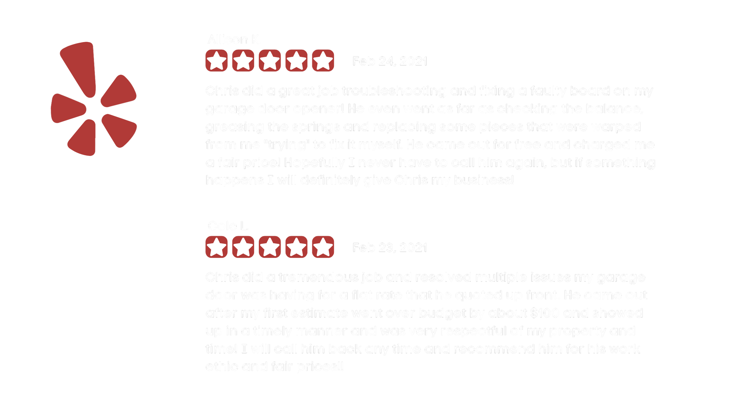 Hi, I’m Chris - Owner and Project Lead at Galaxy Doors. I know how important it is to find reliable support when you have a garage door that is stuck or malfunctioning, or have an upcoming project need. Count on Galaxy Doors to provide you with fast and affordable services that you can depend on.